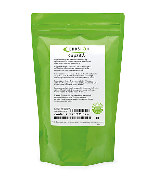 Kupzit® is an innovative copper citrate preparation developed for the eliminiation of sulphide off-flavours, above all, hydrogen sulphide odours in wine and fruit wine, and in other fermentation products. Kupzit® contains 2% copper citrate. For easy dosage and handling, it is coated onto a mineral carrier material - a particularly pure, high-quality bentonite - and granulated.